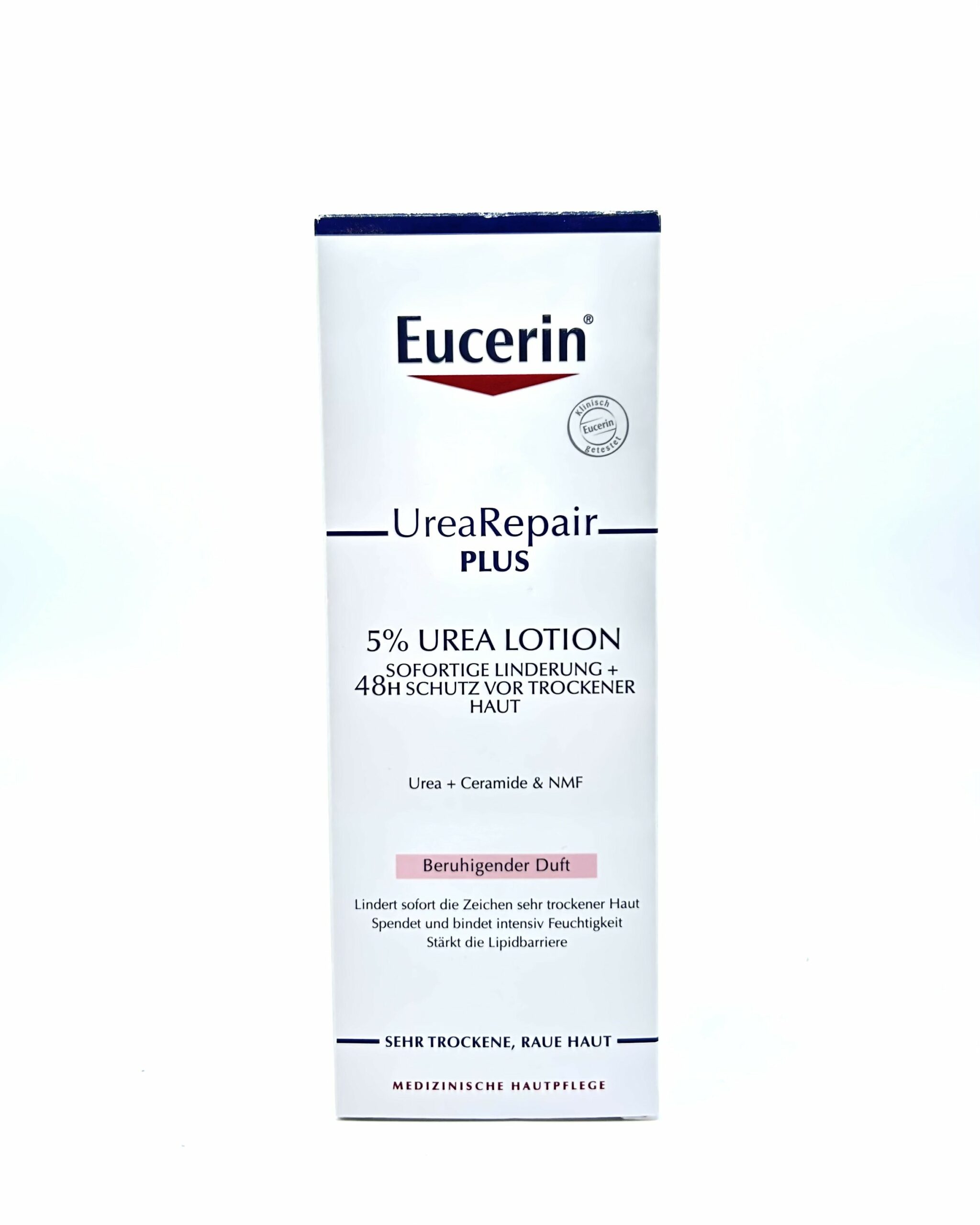 Eucerin Urea Repair plus 5% Lotion spendet intensive Feuchtigkeit und beruhigt die Haut sofort. Sie schützt 48 Stunden vor Trockenheit.